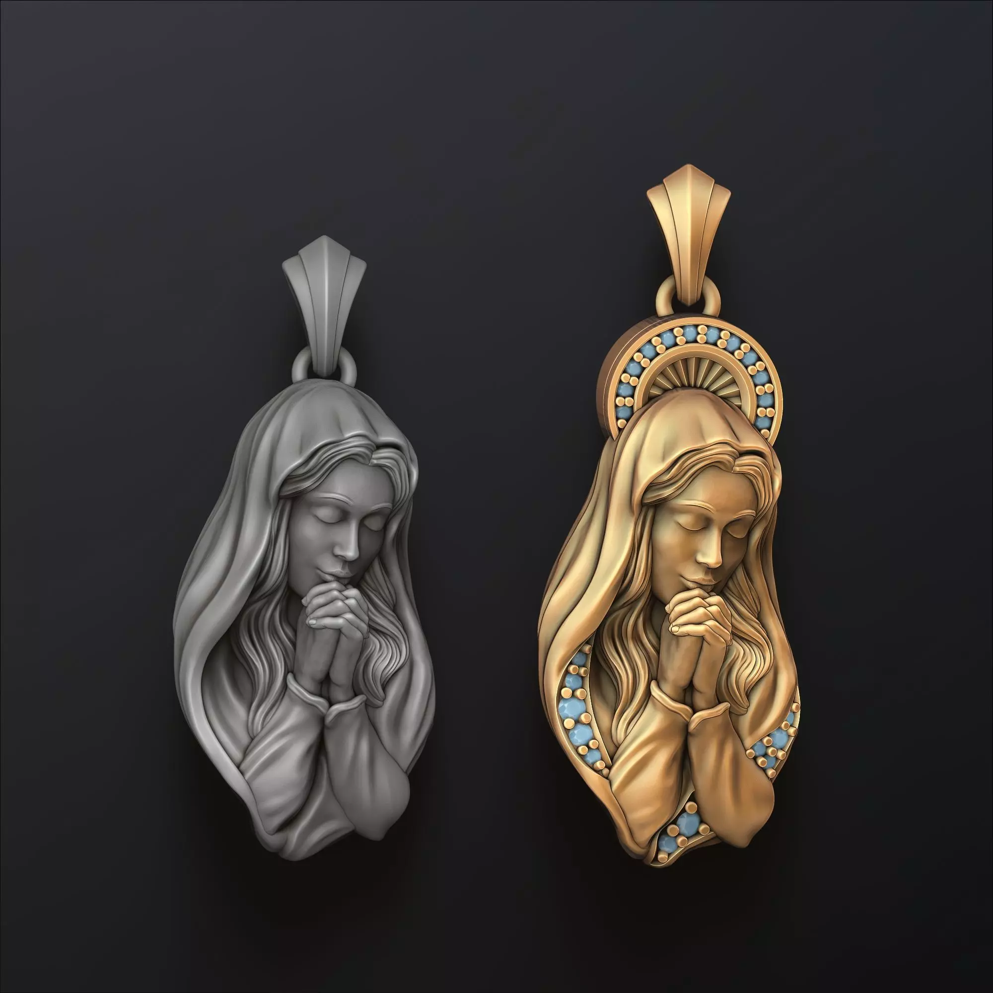 334.Saint holy virgin Mary pendant with gems 3D Print Models