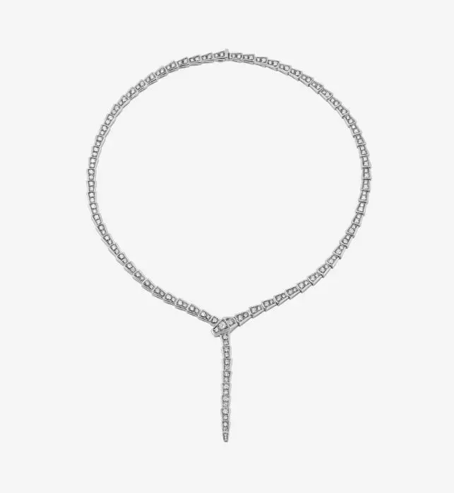 In a tribute to its spirit animal, Bulgari captures the power of seduction in this Serpenti Viper necklace, camouflaging sensuality and temptation with a hypnotic design. Sophisticated and glamorous, this jewel coils around the neck striking with the precious beauty of the scales and with the distinctive sinuosity of the snake. THERE IS FILE WITH PRONG ALSO AS YOU LIKE YOU CAN HAVE THAT .