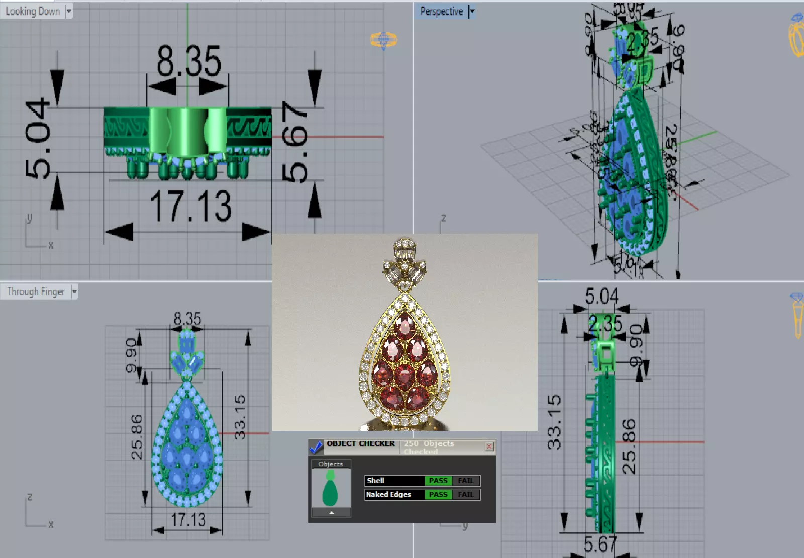 Inner Stones: The center of the pendant is filled with a collection of pear cut stones in a dense cluster arrangement. These stones are carefully arranged to completely cover the surface of the teardrop.