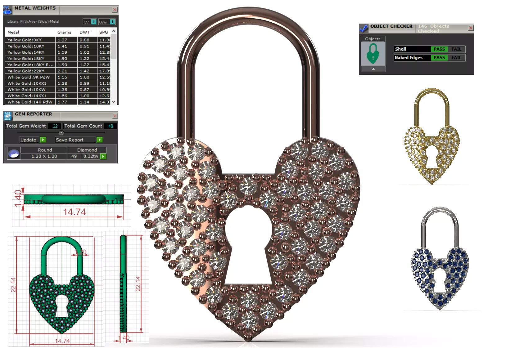 Stl 3dm Pendant Diamond Paved Heart Padlock jp0361 3D print model