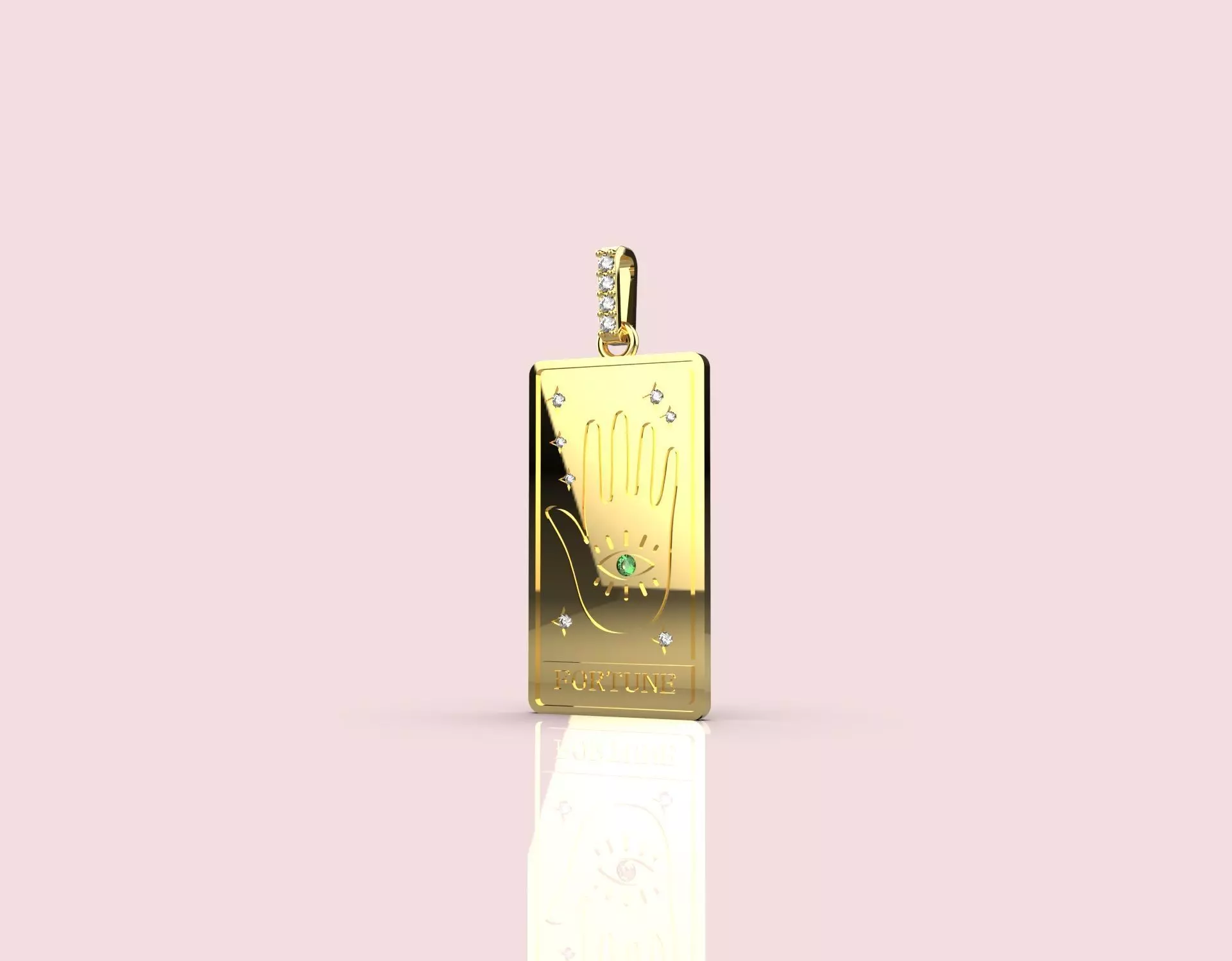 Metal Choices: Fortune Tarot necklaces can be crafted from various metals such as sterling silver, gold (yellow, white, or rose), or brass.Gemstones: Depending on the design, gemstones may be incorporated to enhance the symbolism. For instance, citrine for abundance (associated with The Sun card) or turquoise for spiritual protection (related to The Star card).Detailing: The craftsmanship may involve intricate detailing to faithfully capture the symbolism and aesthetics of the Tarot cards or symbols.Fashion and Style: