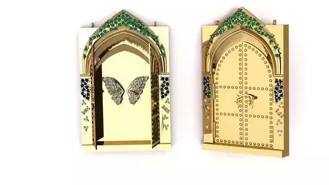 The model is available in 6 parts: Main jewelry piece + 2 doors + 1 lock mechanism - 2 Chain hooks