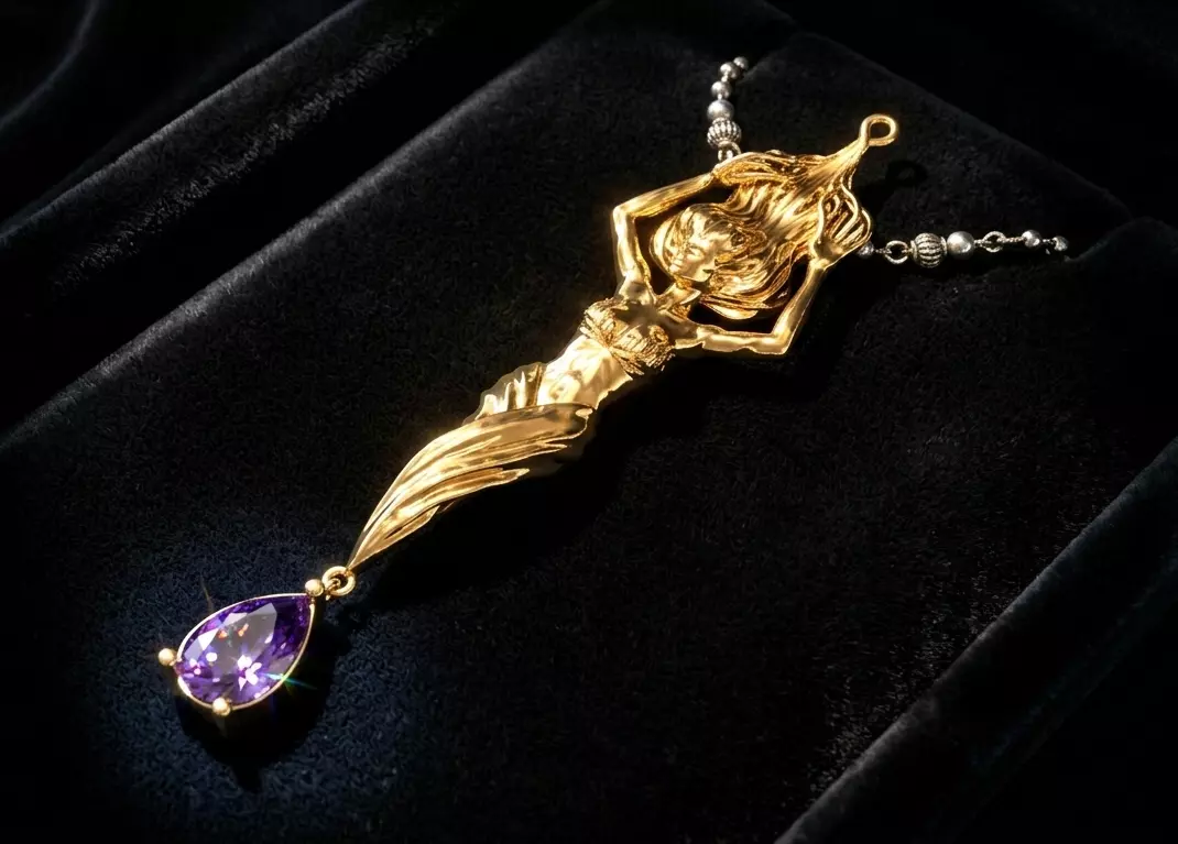 #FigurativeArt #GoddessJewelry #PurpleGemstone #UniquePendant #DesignerJewelry #LuxuryTrends #ArtisticJewelry #SolidGold #JewelryCollector #LuxuryFashion