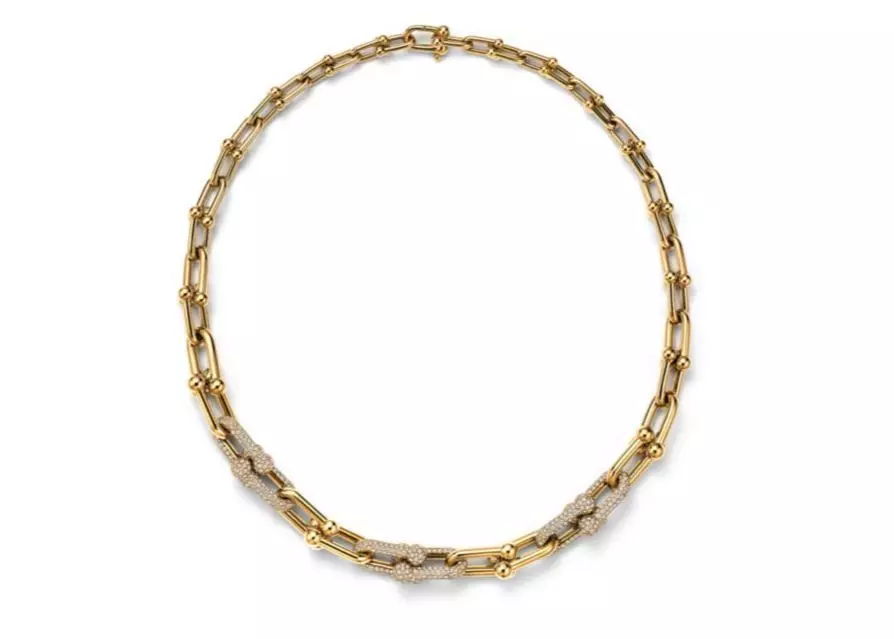 Description & DetailsTiffany HardWear is inspired by the attitude and energy of New York City. This bold 18k gold necklace features the collection’s signature gauge links in graduating proportions. Alternating links are carefully set with round brilliant diamonds in a honeycomb pattern to achieve maximum shine. With its striking interplay of textures, this design can’t help but turn heads.