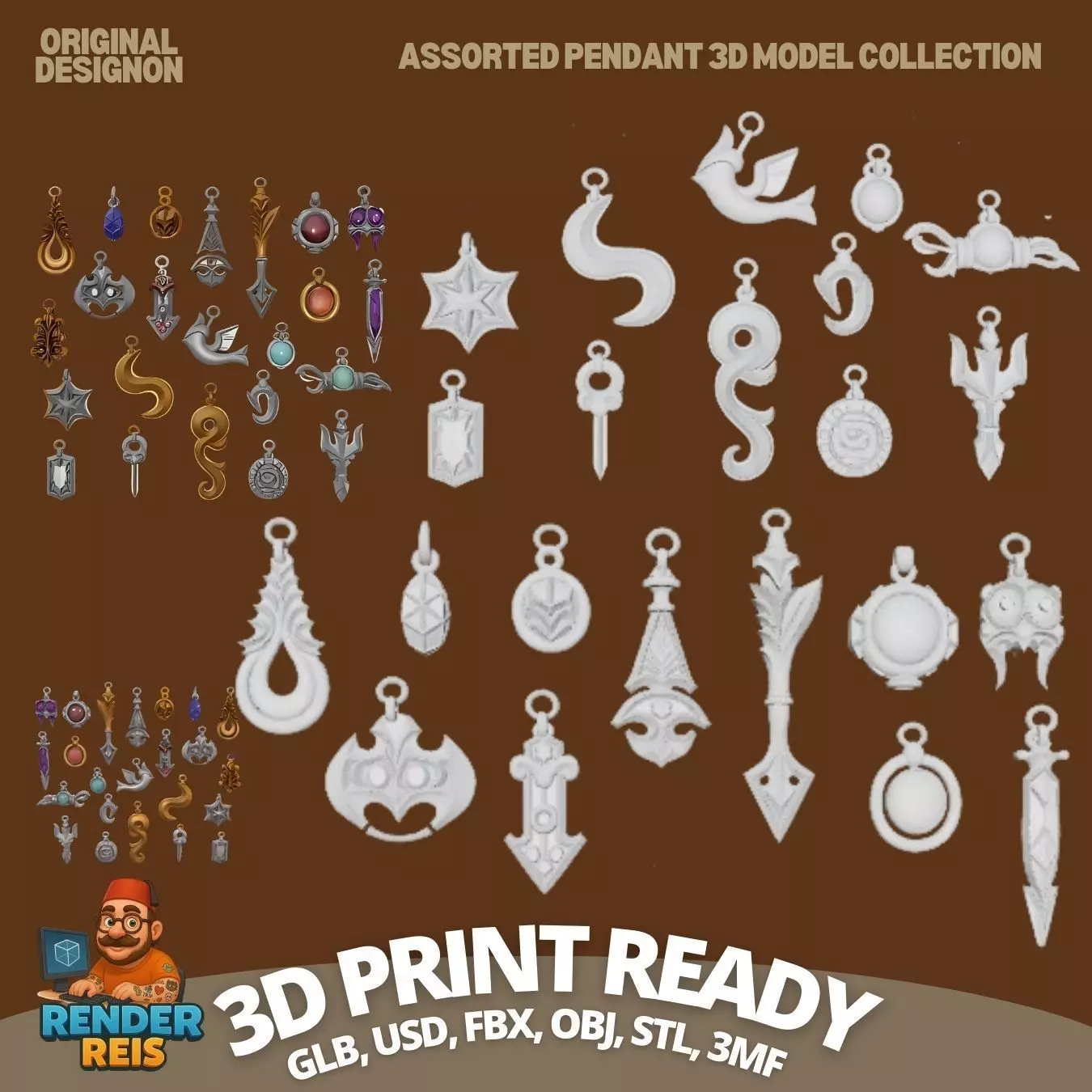 Unleash your imagination and explore mysterious realms through this curated set of 20 unique 3D pendant models. Inspired by ancient legends, mystical symbols, and futuristic visions, each pendant is a miniature story waiting to be worn. From gothic talismans and cryptic relics of lost civilizations to abstract galactic emblems, this collection offers a diverse range of designs to match your fantasy.