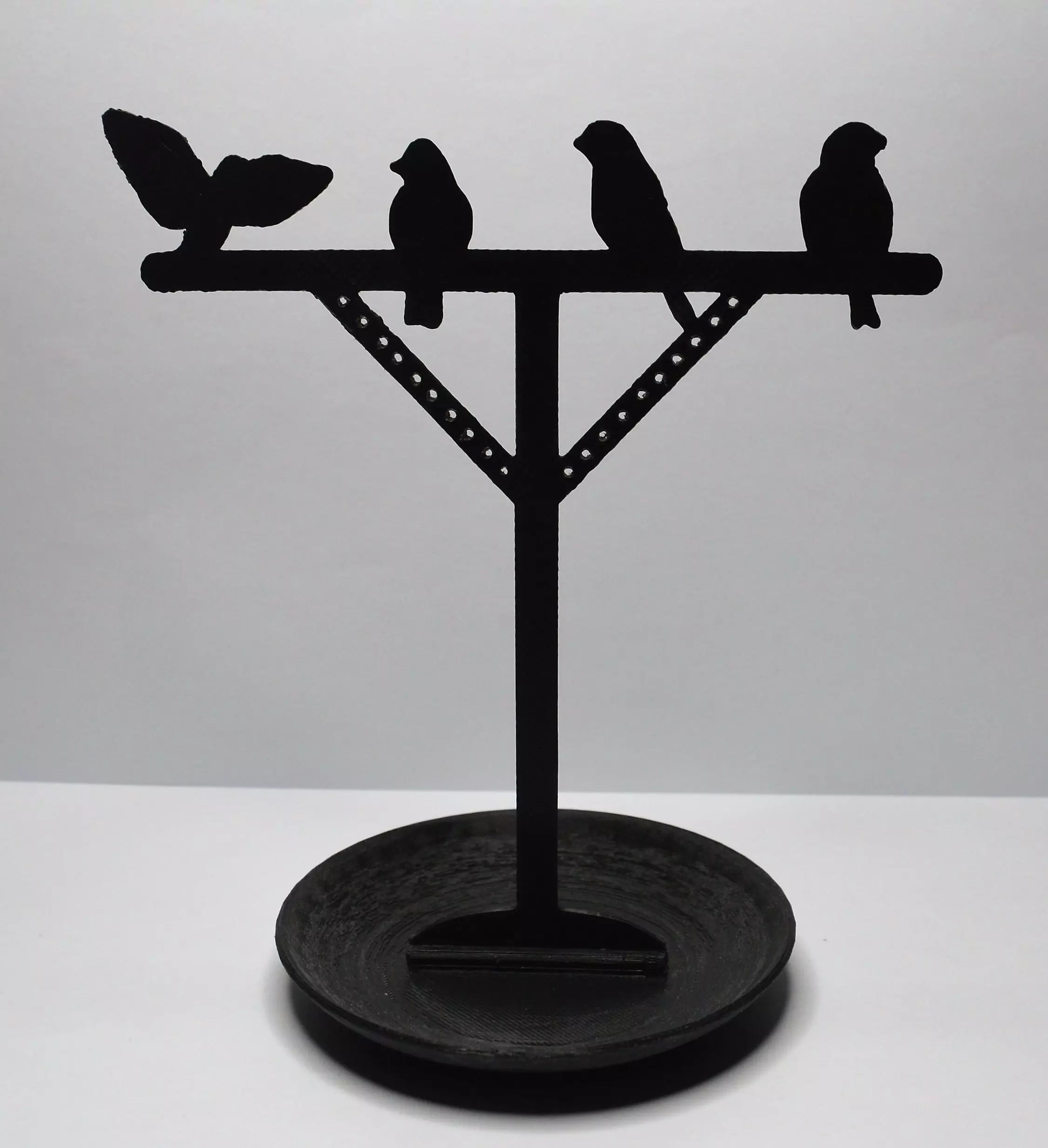 Introducing our stylish 3D printed bird jewelry holder, the perfect blend of elegance and functionality for displaying and organizing your cherished jewelry pieces. This unique and eye-catching accessory is not only a decorative piece but also a practical solution for keeping your necklaces, earrings, bracelets, rings, and other small items in one place.