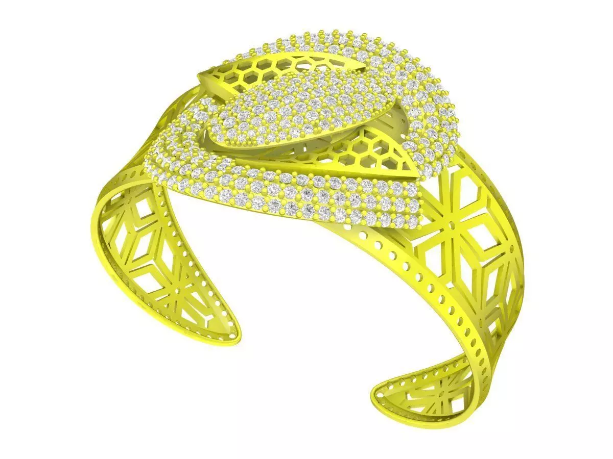 The open cuff construction allows for comfortable wear and size flexibility while maintaining structural balance and symmetry. The geometric side lattice enhances durability and reduces metal weight without compromising strength, making the model practical for production.