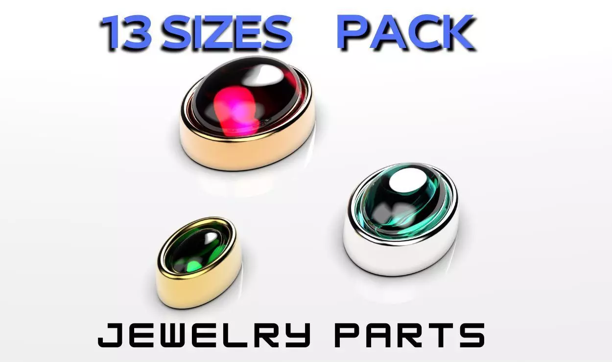 - A package of 3d printable flush set cabochon ring heads, earrings or pendant