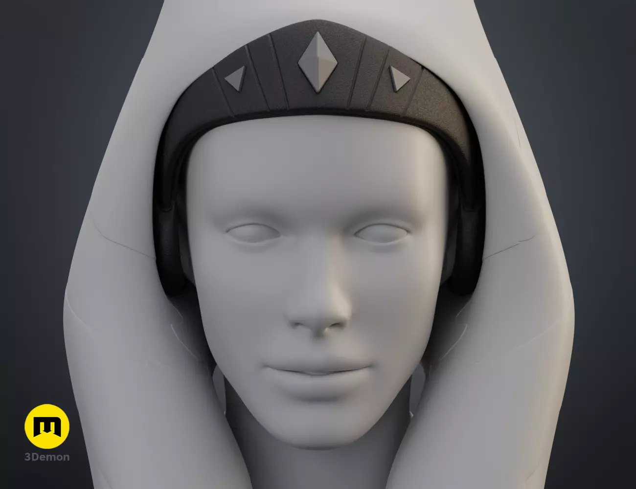 This is a digital 3D printable model of Ahsoka Tano Headpiece from the Star Wars: Ahsoka series