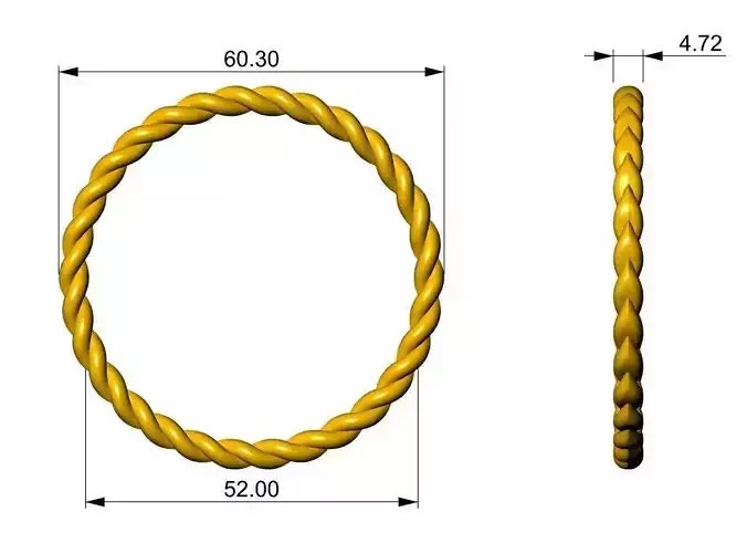 A beautifully detailed braided hoop modeled in Rhinoceros 3D, designed with precision and balance between elegance and realism.This model features a twisted ring structure with an inner diameter of 52 mm and an outer diameter of 60 mm, making it ideal for jewelry design, accessories, or decorative components.
