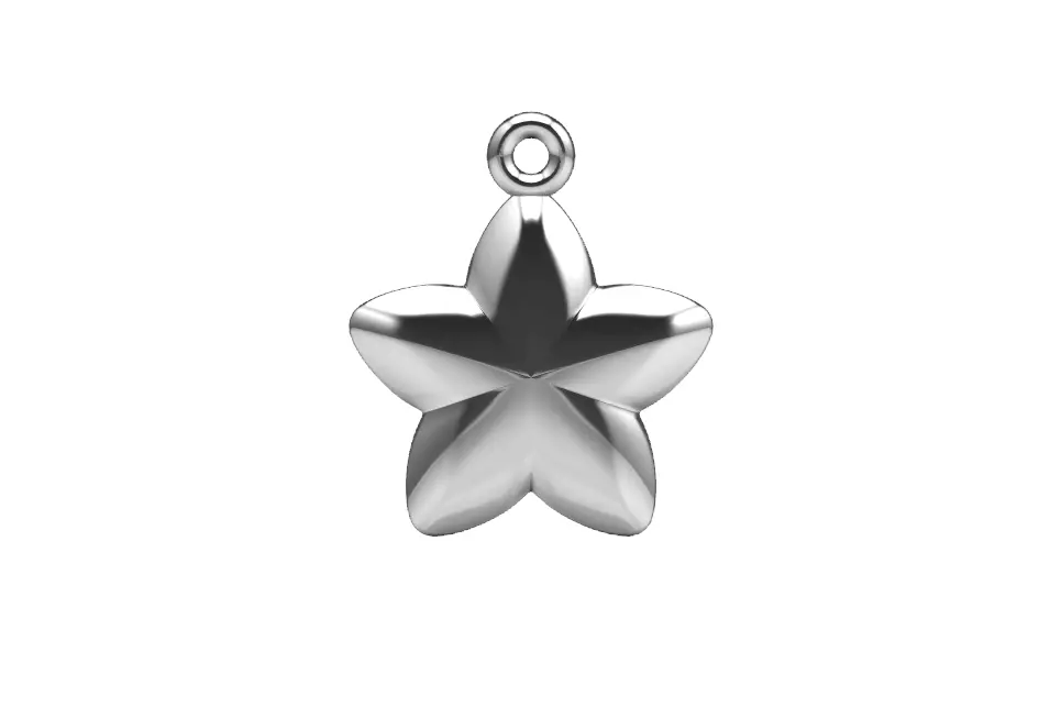 The file includes a solid and a hollow version of the star, each with and without an o-link attached. The five points of the star will fit inside a circle that is 14mm in diameter. The star is 4.5mm deep.
