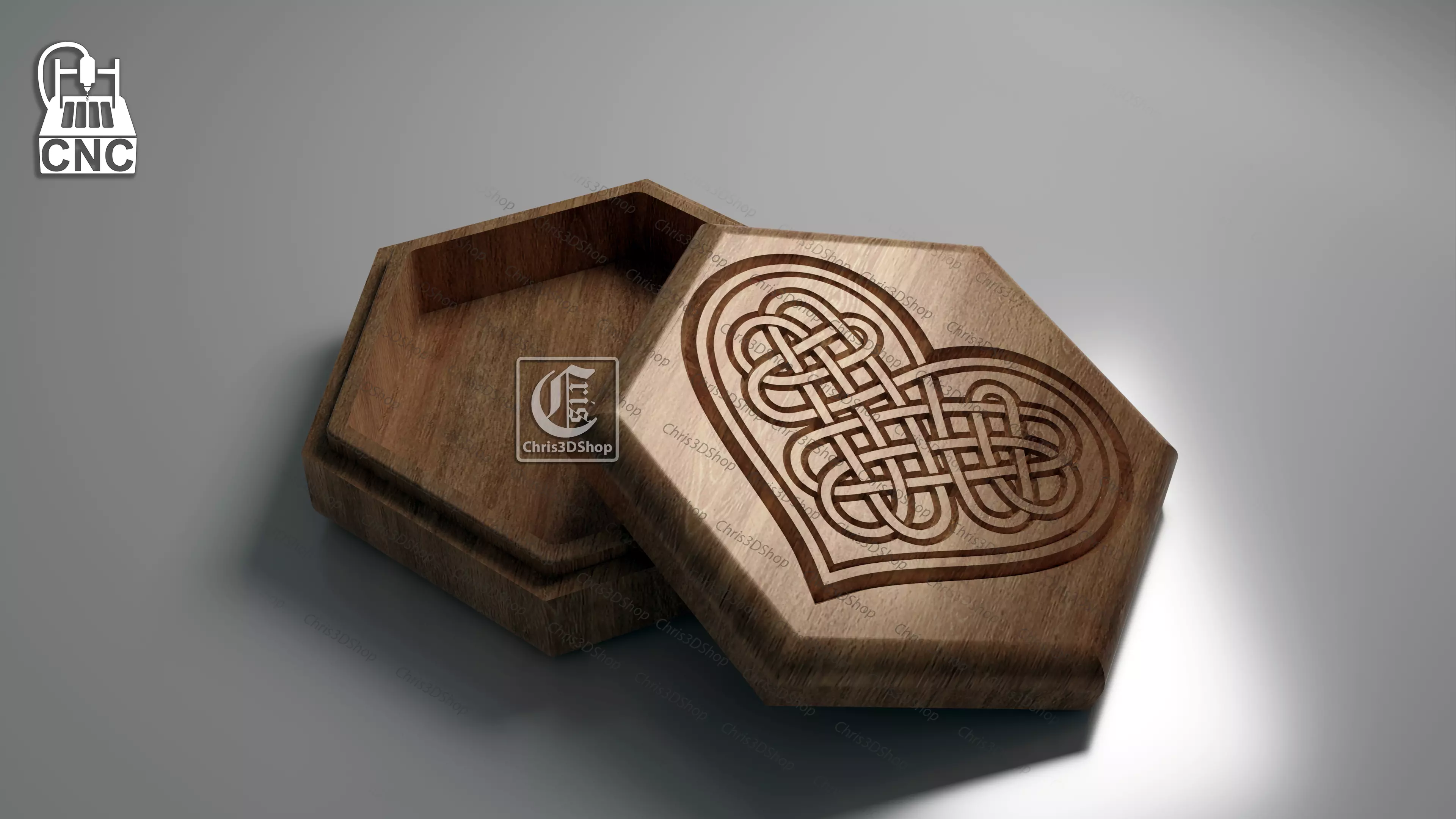 - vector files (dxf, svg, eps, ai, pdf) that will help you to build the box and the v-carved model for the top of the lid.It is easier with a cnc router to build the box using the dxf or svg files.