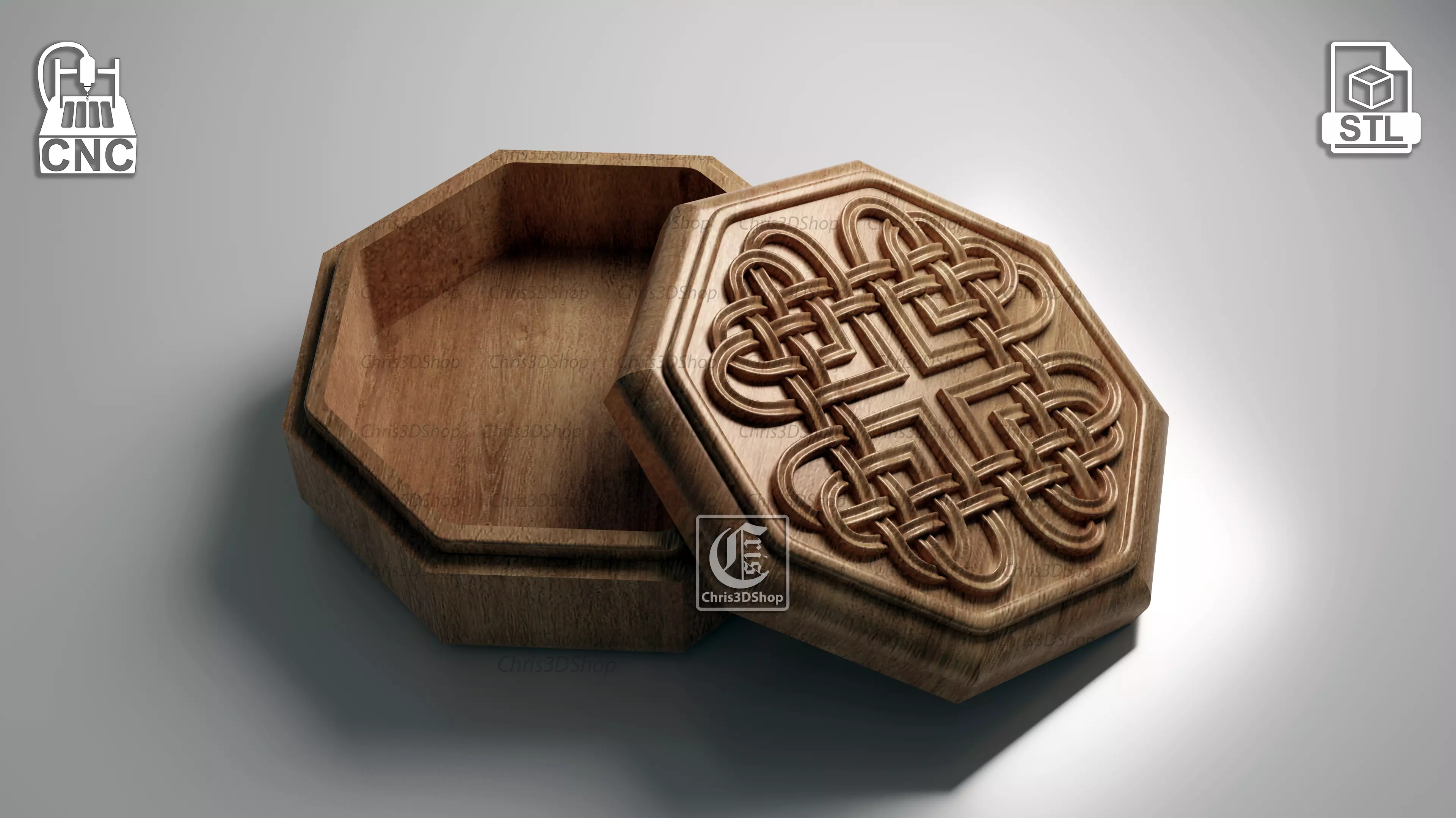 Octagonal shaped jewelry box -3D STL for CNC and 3D PrinterThe model can be used with Aspire, Artcam, Vcarve, Carveco, or any other software that allows you to import the stl file format.
