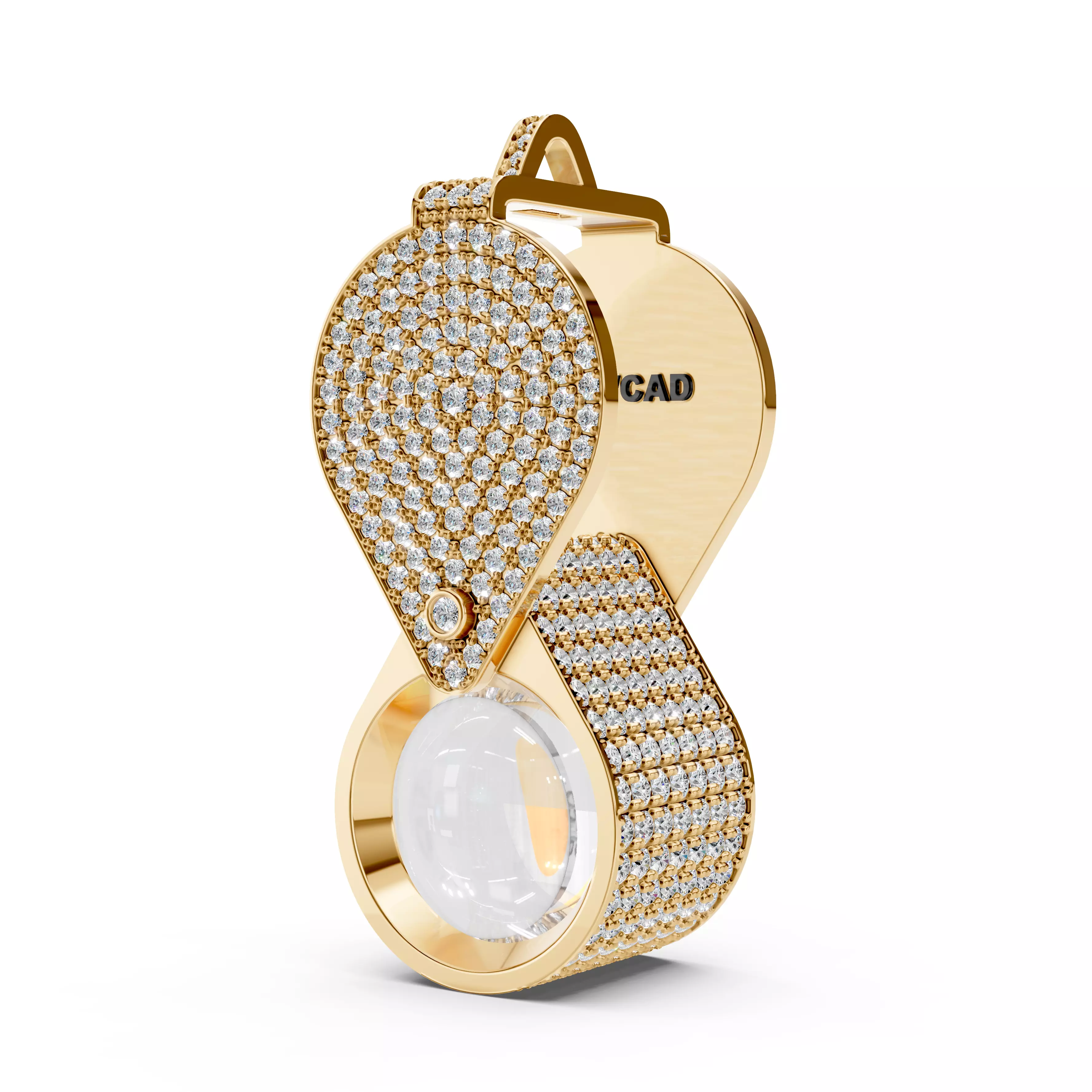 This CAD file features a magnifying loupe with handle designed at true-to-life scale, accurately reflecting the proportions of a real jeweler’s loupe.The design allows for diamond setting, adding a luxurious and distinctive character to the piece.