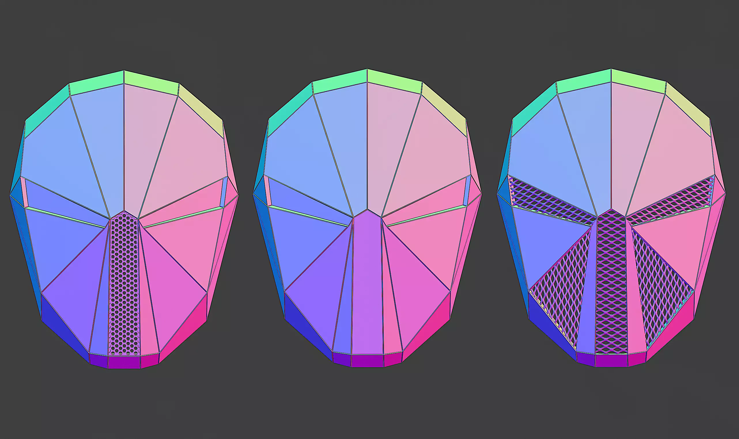 Model of Concert Mask with Mesh in the Middle (5 Models):Basic Mask ModelMirror Eyes without SlitMirrored Eyes with SlitMask with Mesh EyesMask featuring Mesh in the Middle