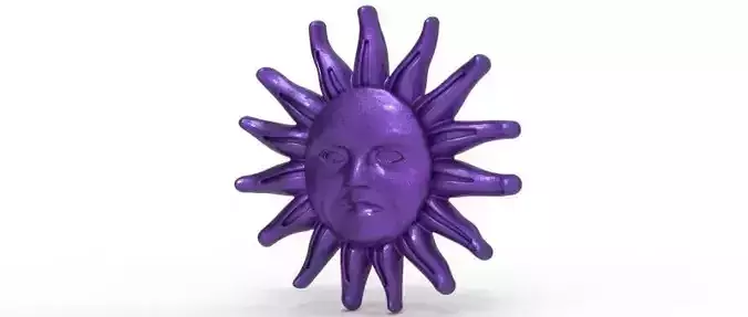 This 3D model features an organic sun design with a sculpted human face and radiating rays, developed as a decorative shoe ornament with rear rivet fixing. The piece combines soft facial features with dynamic sun rays, creating a bold yet refined aesthetic suitable for luxury footwear and fashion accessories.