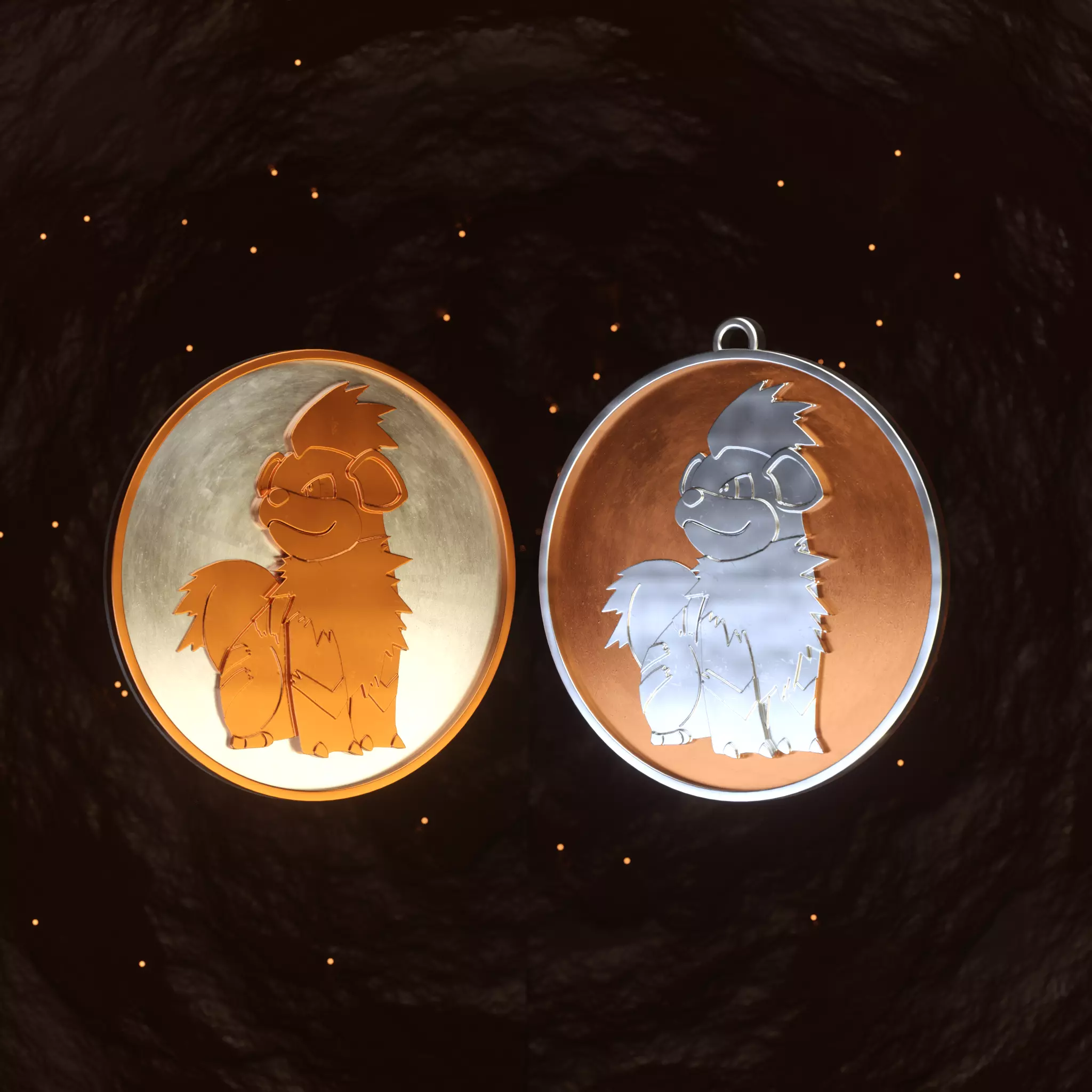 One is a Growlithe Badge/Coin and the other one is a variant that can be used as a Keychain/Pendant