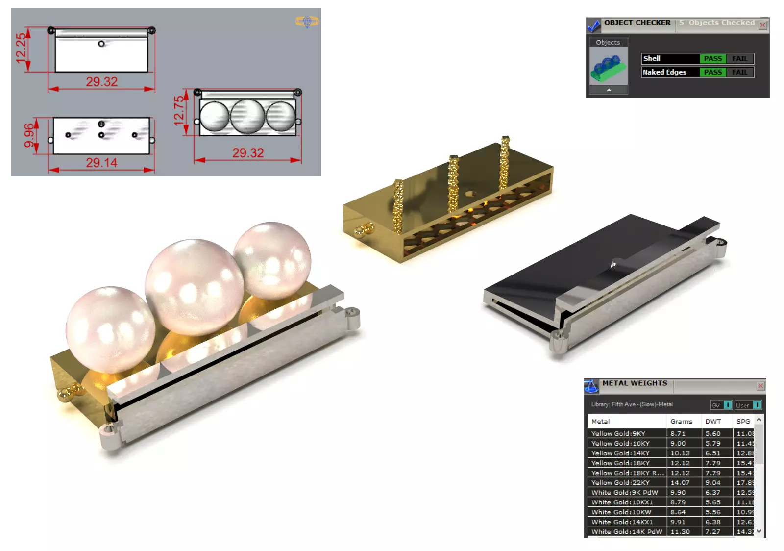 Triple Pearl Wide Box Clasp - CAD file ready for manufacturing and precision casting