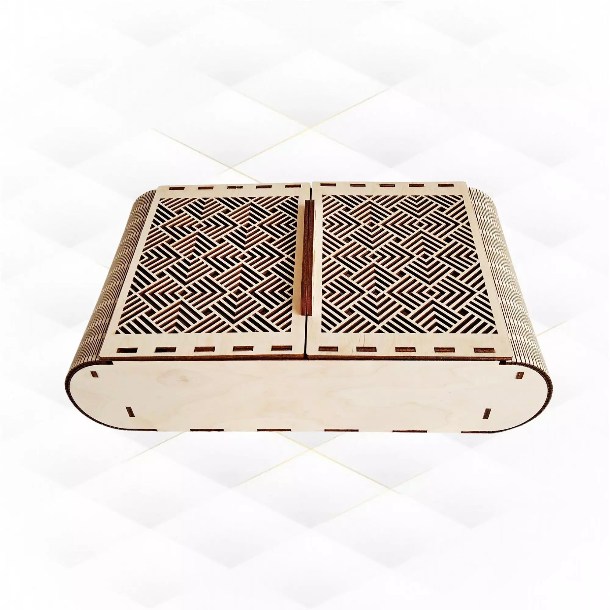 Two sash box, download laser cut plan. Gift box laser cutting design. Laser svg, laser dxf, laser template. Engraving plan. Laser pattern, vector template, cut drawing. Svg dxf files. Glowforge svg cut file. Download file, digital layout. Original, unique product design will help you create a stunning gift or product for your store. Universal product! It can be made from plywood (as in the photo), cardboard or other material. Additionally, painting in your favorite colors, you will receive an exclusive gift, well, just a gorgeous thing!