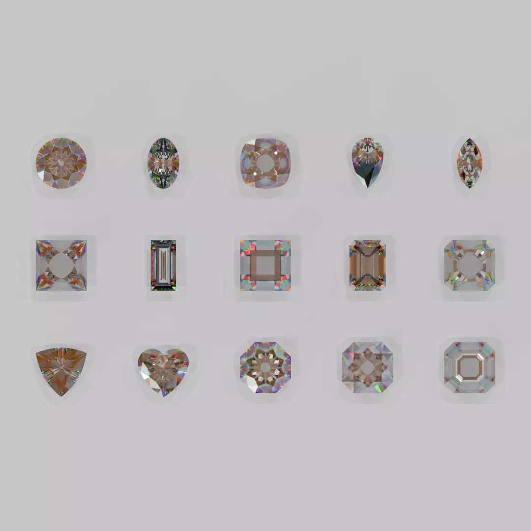 This pack contains a complete collection of the most commonly used diamond and gemstone cuts, carefully modeled for jewelry design, rendering, CAD projects, and product visualization.Each gemstone is modeled with accurate proportions and clean topology, making the models suitable for jewelry designers, 3D artists, product visualization, and animation projects.