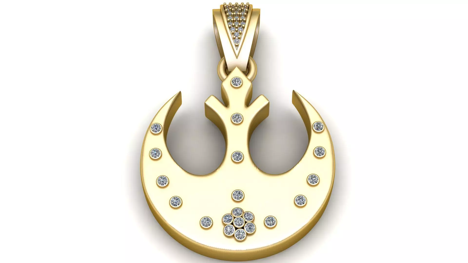 Join the resistance in style with this stunning Rebel Alliance Insignia Pendant. This 3D jewelry model features the classic Starbird symbol, precision-crafted in high-polish gold with a substantial, architectural depth.