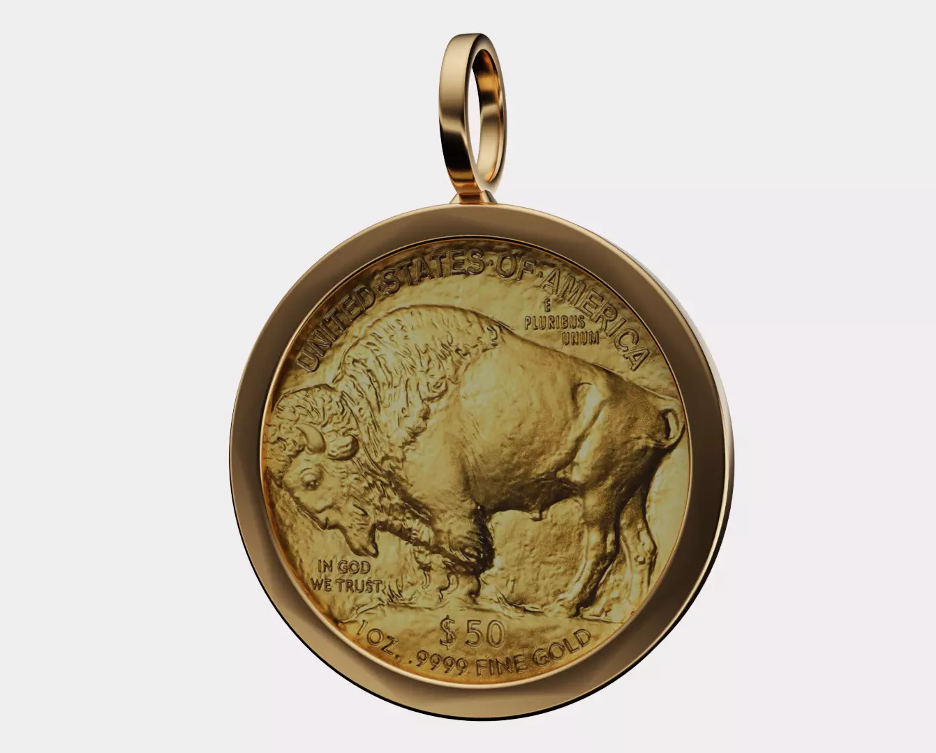 1oz gold american buffalo coin frame bezel pendant 3D print model
