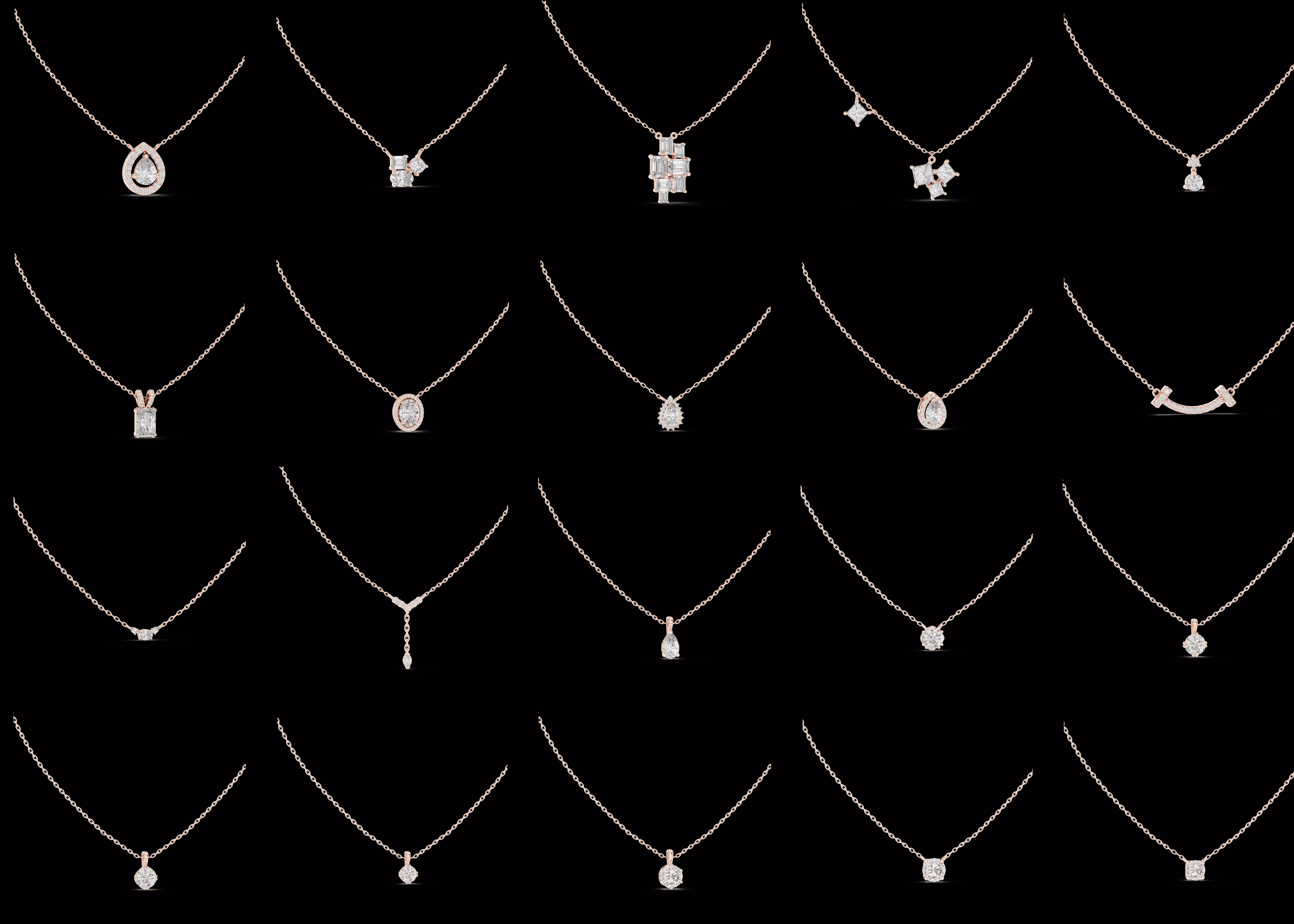 This refined CAD collection includes 20 minimal diamond pendant designs, created with a focus on simplicity, elegance, and everyday wearability. The set is ideal for modern jewelry collections that prioritize clean aesthetics and timeless appeal.