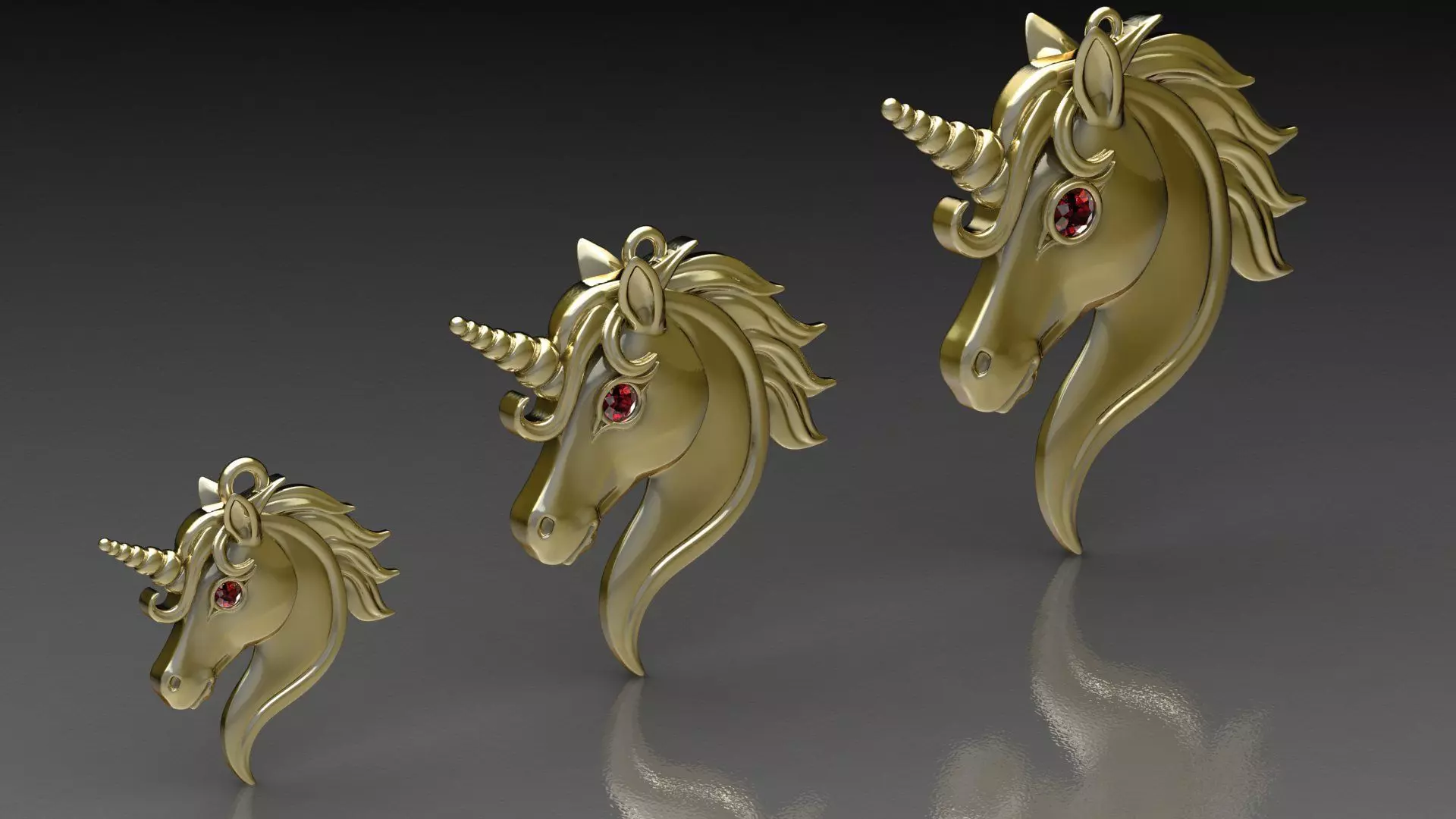 3 MODELS Unicorn Head Pendant High Detail Fantasy Jewelry 3D print model