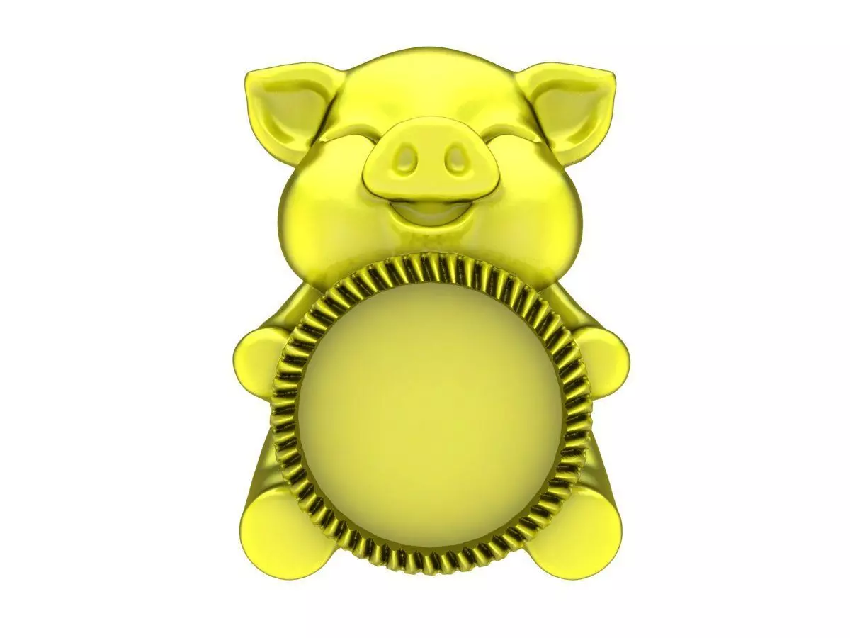 This cute pig charm pendant 3D model features a cheerful cartoon-style pig holding a circular charm element, creating a playful and friendly jewelry design. The rounded shapes and soft detailing give the charm a joyful character, making it ideal for novelty and gift-oriented jewelry collections.