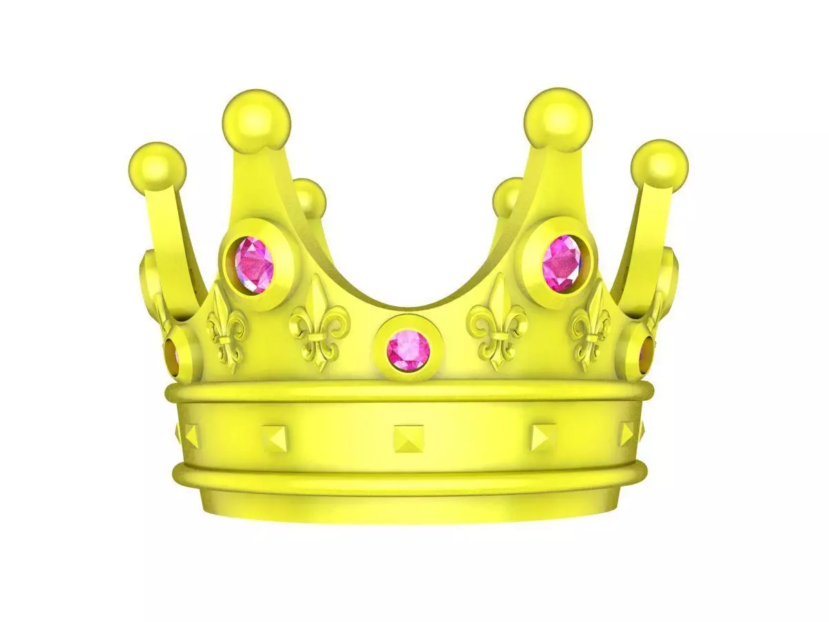 This 3D jewelry model features a royal crown–inspired ring design with a bold and distinctive structure. The ring is shaped like a classic crown, incorporating multiple rounded prongs and gemstone seats arranged evenly around the top, creating a luxurious and playful appearance.