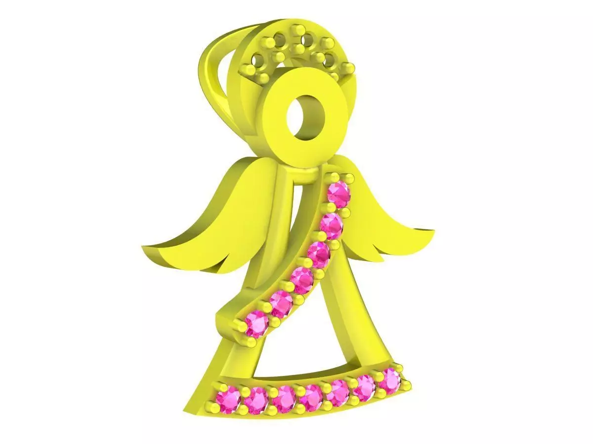 This cute angel pendant 3D model features a graceful and symbolic design inspired by guardian angels, representing protection, love, and good fortune. The pendant showcases a soft flowing silhouette with angel wings and a pavé stone layout that adds sparkle while maintaining a clean and elegant structure.