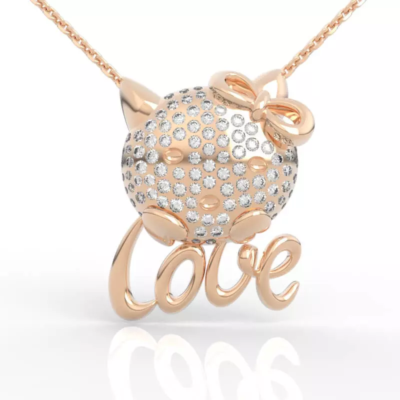 Professional JCD, 3DM, and STL formats includedTotal height: 23.64mm (stacked vertical design)Width: 18.71mmDepth: 5.65mm sculptural reliefTwo-part composition: character head above, “love” script belowSignature right-side bow with dimensional ribbon detailPointed cat ears with proper triangular geometryFacial features: dual dot eyes, six whisker marksCursive “love” lettering in three-dimensional script92 pre-positioned round diamond seatsTotal diamond weight: 0.634 caratsStone size distribution for optimal pavé coverage:6 stones at 1.0mm diameter16 stones at 1.1mm diameter15 stones at 1.2mm diameter55 stones at 1.3mm diameterMicro-pavé setting plan across facial surfaceBrand-accurate proportions and featuresCasting-optimized with proper draft and wall thicknessYour client wants Hello Kitty jewelry that doesn’t scream “mall kiosk.” You need licensing-level accuracy—that bow placement, those exact proportions, the specific facial features that make it legally Hello Kitty, not “generic cat character.” Then there’s the technical nightmare: 92 diamonds across a curved surface where every stone size and position affects both sparkle and structural integrity. You’re simultaneously navigating trademark law, pavé engineering, and cartoon character modeling. The deadline? Two weeks ago, because character jewelry lives and dies by seasonal trends and licensing windows.