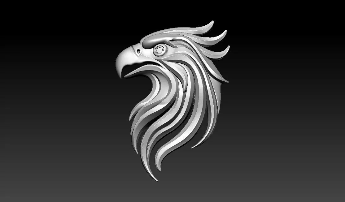 This Stylized Eagle Head Pendant 3D model features a sharp and elegant eagle profile with flowing feather layers and a strong beak form. The design focuses on clean curves and bold depth, giving it a premium and powerful look suitable for hip hop and statement jewelry. The layered feather structure creates a dynamic surface that looks great in polished metal or stone-set versions.