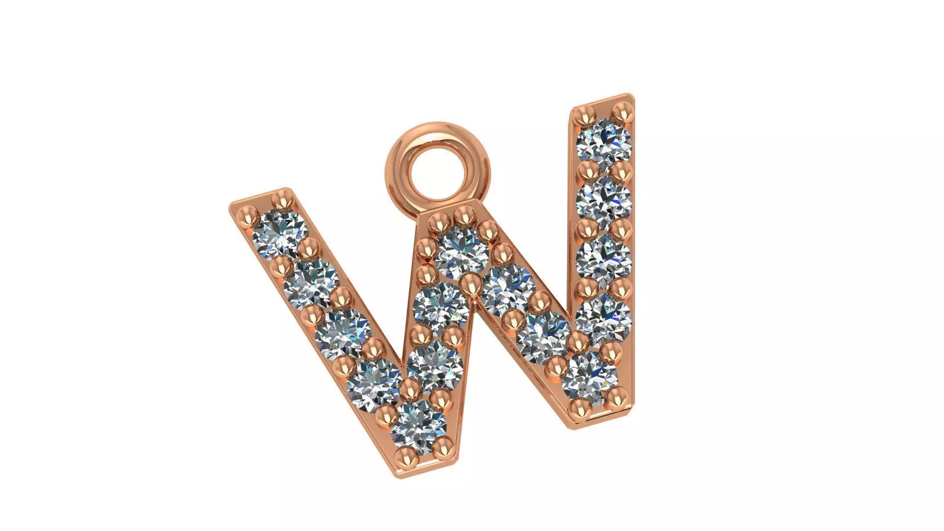 Alphabet Letter W Pendant Charm 3dm stl render details 3D print model