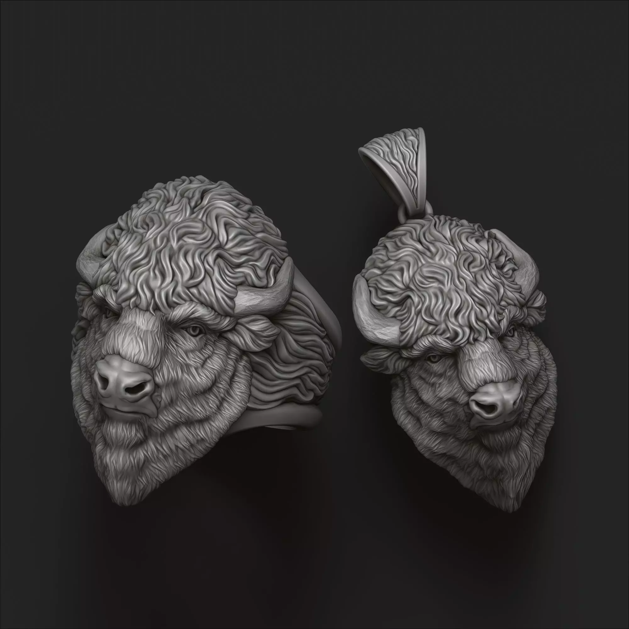 387.American bison buffalo pendant ring set 3D Print Models