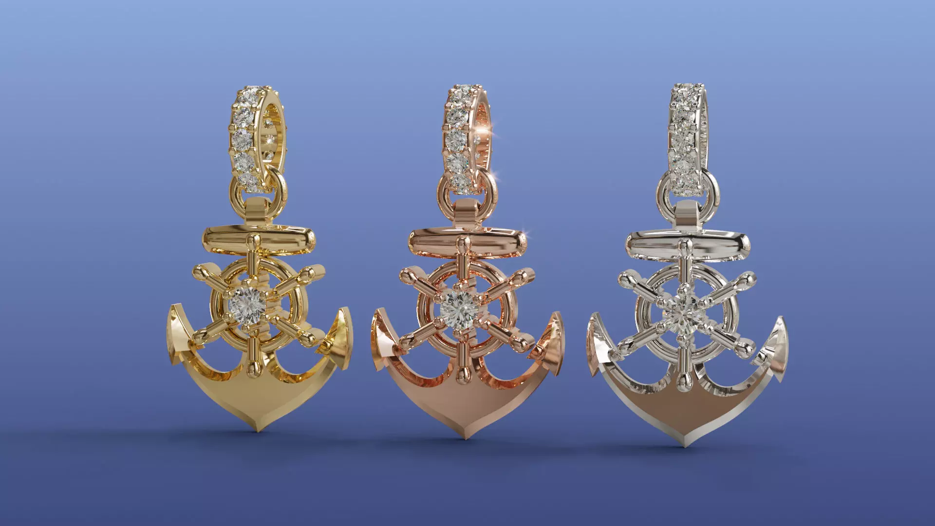 Diamond Anchor 3D Pendant Necklace Design Jewelry CAD Design