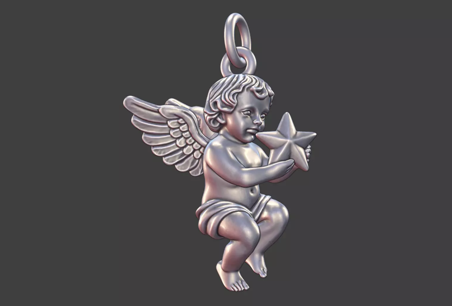 This finely detailed angel cherub pendant features a classical baby angel gently holding a star, symbolizing guidance, protection, and spiritual light. Sculpted with soft anatomical proportions and flowing forms, the design balances innocence and sacred symbolism, making it suitable for timeless jewelry collections as well as contemporary interpretations.