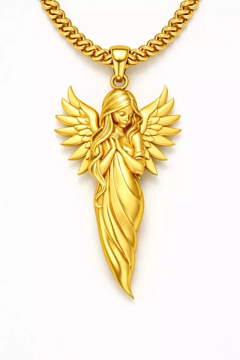 This angel wing pendant is an original 3D model sculpted by me with a strong focus on elegance, fine detailing, and wearable proportions. The design features a graceful angel figure with flowing hair, softly folded hands, and layered wings that create depth and visual balance. The smooth drapery and clean contours make it ideal for high quality jewelry production.
