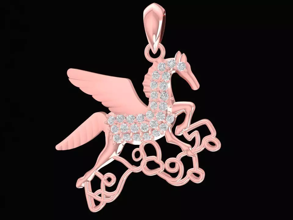 This luxury Pegasus diamond pendant jewelry 3D model features a flying winged horse design inspired by mythological symbolism. Pegasus represents freedom, strength, creativity, and success, making this pendant ideal for meaningful and high-end jewelry collections.