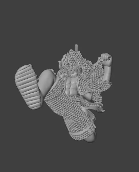 It's a 3D print model of an anime character, specifically Luffy.The model features detailed textures, especially in the character's clothing.The pose suggests action.