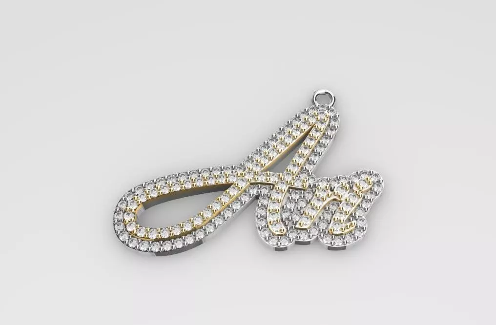 Ari name pendant with diamonds 1.3mmFile for 3d printer and renderings