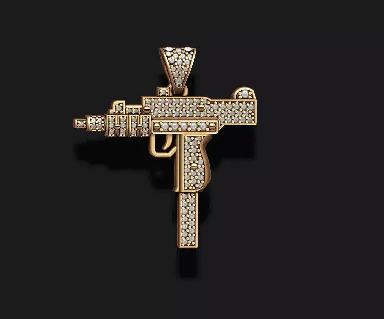 595.automat gun pendant with gems