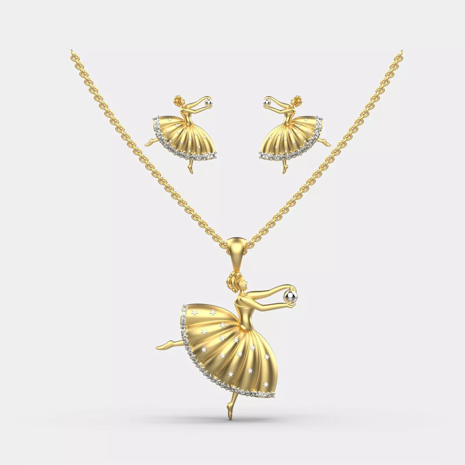 This listing is for a Ballerina Pendant Set STL File, featuring a graceful dancing girl jewelry design with a matching pendant and earrings. The CAD model is professionally created for 3D printing, resin printing, and metal casting, making it ideal for jewelry designers and manufacturers.