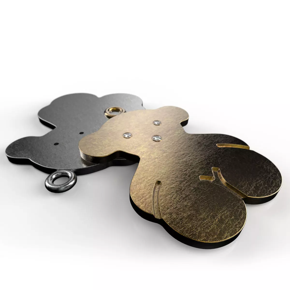 Model is ready for Rendering CNC and 3D Printing. mass Bear (without Dickel) AU 14K - 3.30 gr Eye Diamonds diameter 1.0mm Mouth Diamonds diameter 1.1mm Please note that all weights are close estimates, either gram weight or Carat weight, they are approximate, since they are computer generated , and could vary to the actual physical weight , they are listed only as reference and for your convenience, and should be considered "AS IS".
