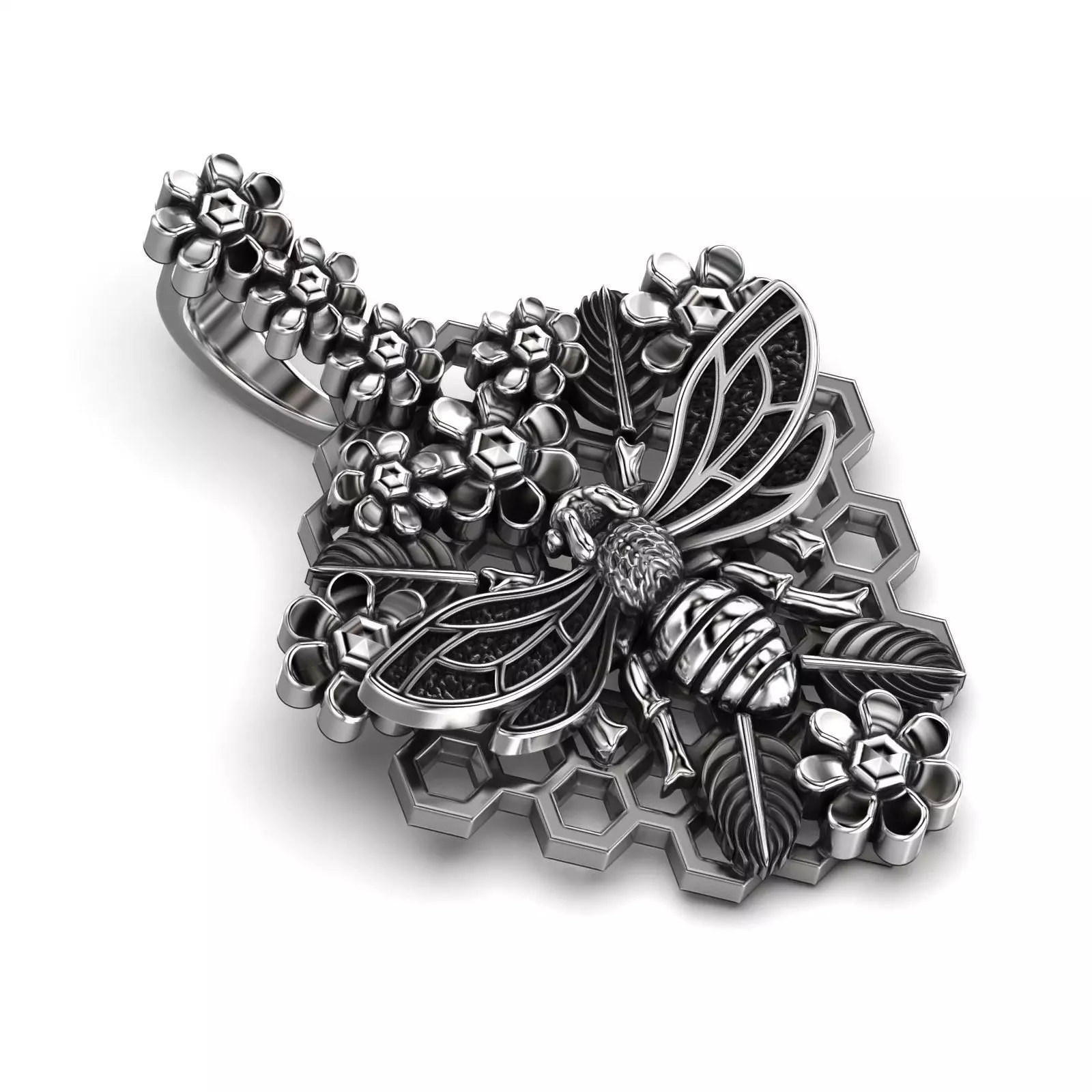 This highly detailed 3D pendant model features a bee resting on a honeycomb, surrounded by flowers and leaves. Carefully crafted for 3D printing, this design is ideal for creating jewelry in gold, silver, or other precious metals. Perfect for pendants or charms, it celebrates the natural beauty and symbolic meaning of the bee.