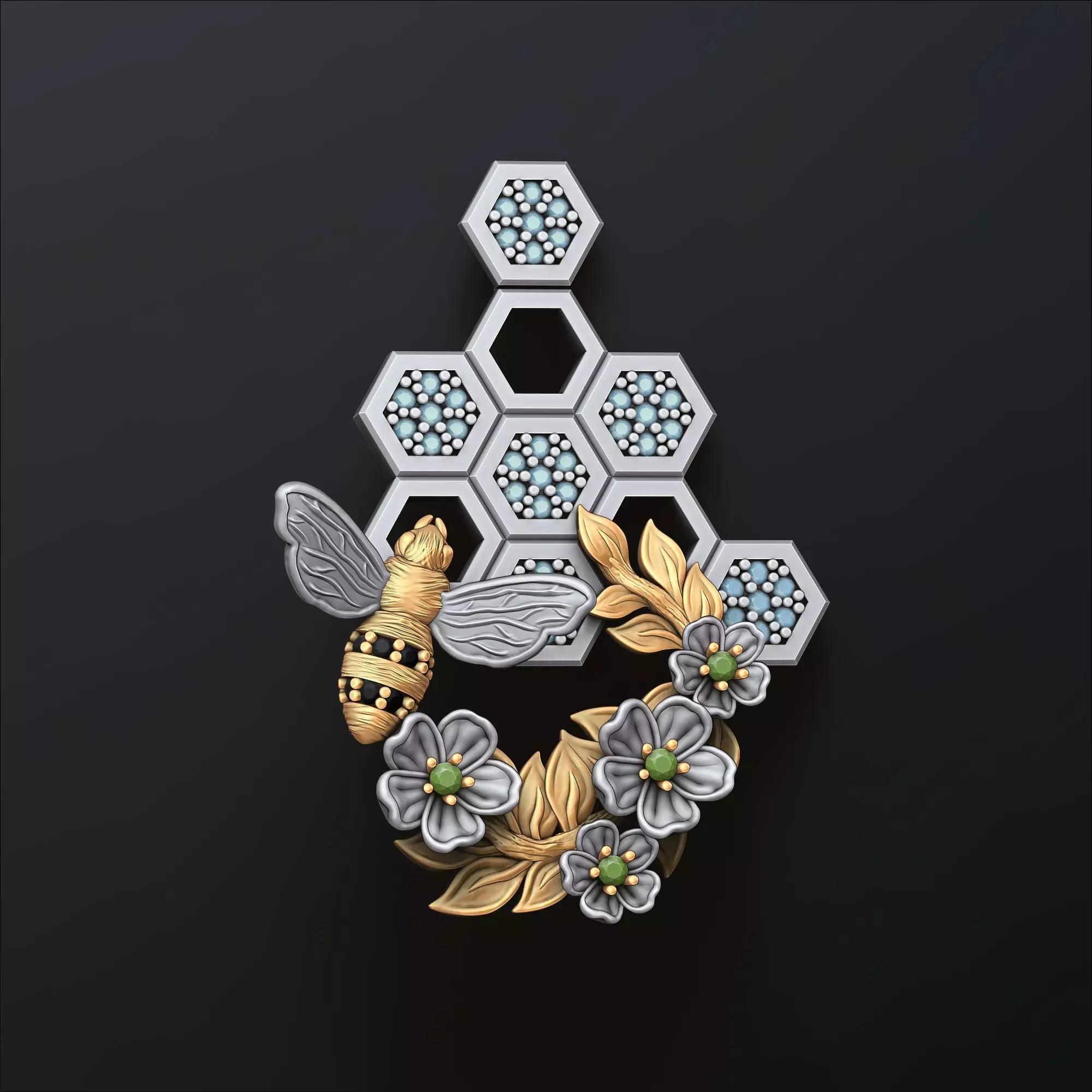 019.Bee pendant with gems 3D Print Model