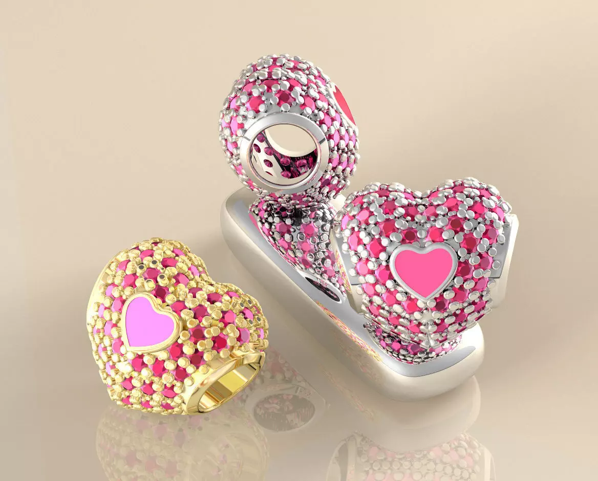 Berloque desenvolvido por fabrica joalheira, já testado e produzido em larga escala. Formato e paredes que garante produção sem surpresas, feita prototipagem e matriz em borracha, para alta produtividade.Pedras Redondas Ø1,25 mm. Área para resina coração central.