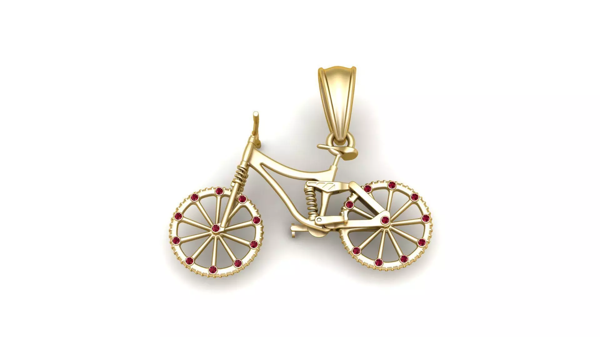 This exquisite pendant features a finely detailed mountain bike crafted in lustrous yellow gold. The unique design captures the dynamic curves and suspension adorned with sporty elegance. Perfect for cycling enthusiasts or anyone who loves adventurous, unconventional jewelry, this pendant seamlessly combines style with a passion for biking