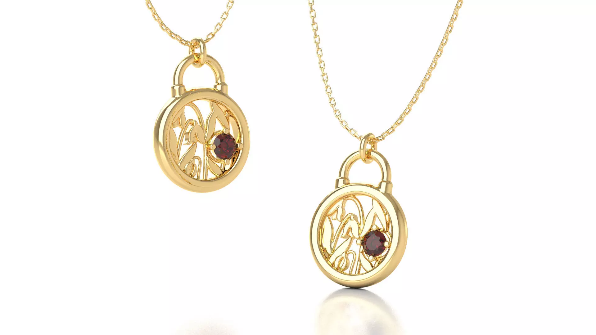 Simple, and dainty yet solid pendant with beautifully arranged January's birth-flower 'Snowdrop Flower' inside a padlock shaped pendant. Finished product preferably to be adorned with red garnet stone -- as January's birth stone