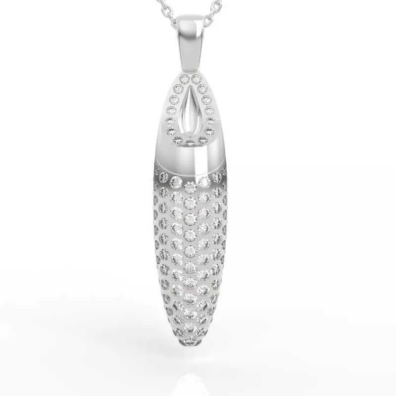 Contemporary Edge Without the Development PenaltyThis Pave Diamond Bullet Pendant model eliminates the gap between market opportunity and production readiness. The elongated bullet geometry is proportionally refined and aesthetically current. The 110-stone honeycomb layout is setting-optimized with proper spacing and accessibility across curved surfaces. The teardrop aperture detail is structurally integrated and manufacturing-verified. File formats ensure compatibility with your existing production infrastructure.